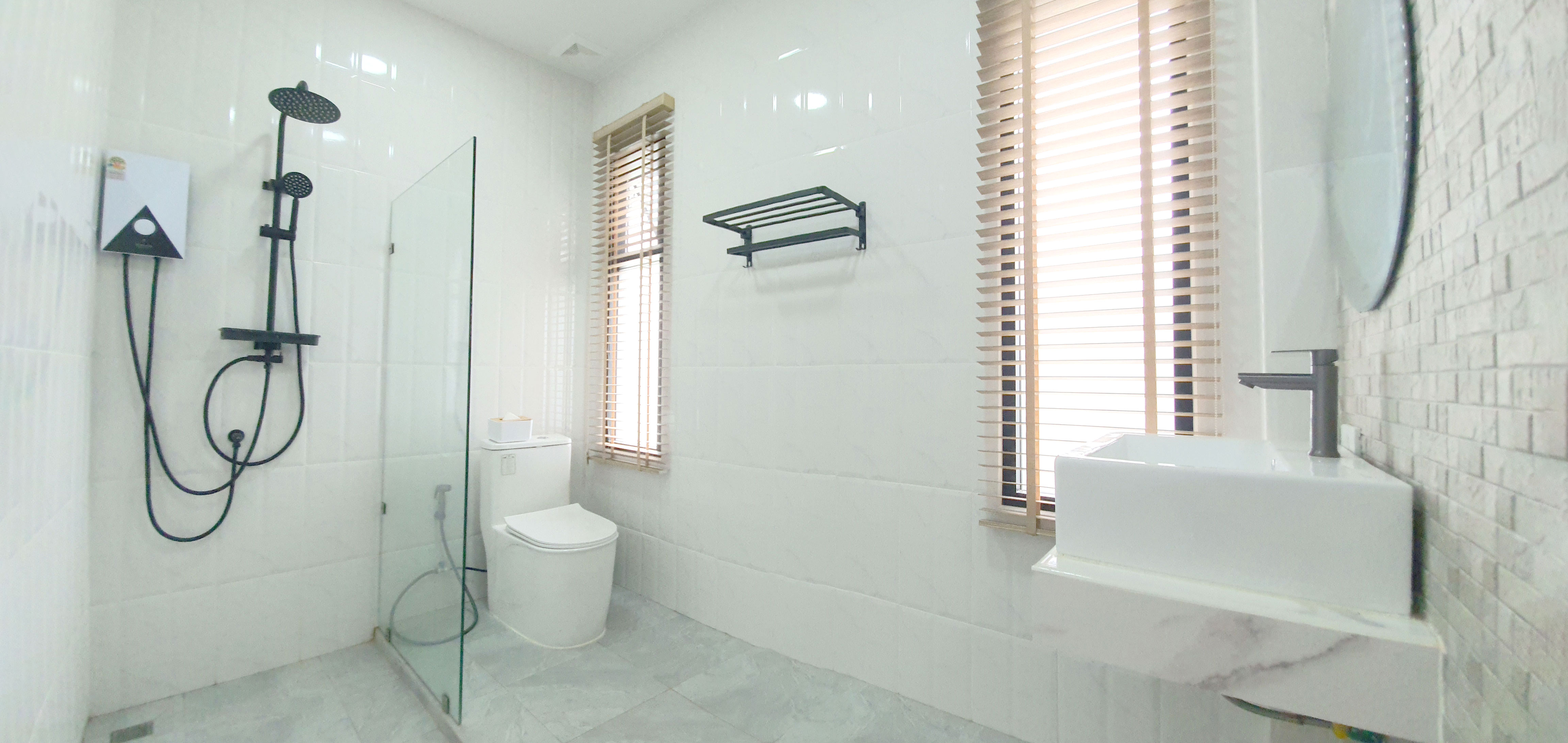 ไม่ต้องรอคิว บ้านพักมี 7 ห้องน้ำ ห้องน้ำในตัว พร้อมห้องน้ำส่วนกลาง ทุกห้องติดตั้งเครื่องทำน้ำอุ่น พร้อมสุขภัณฑ์และอุปกรณ์อาบน้ำมาตรฐานสากล ให้คุณรู้สึกสดชื่นและผ่อนคลายได้ตลอดวัน