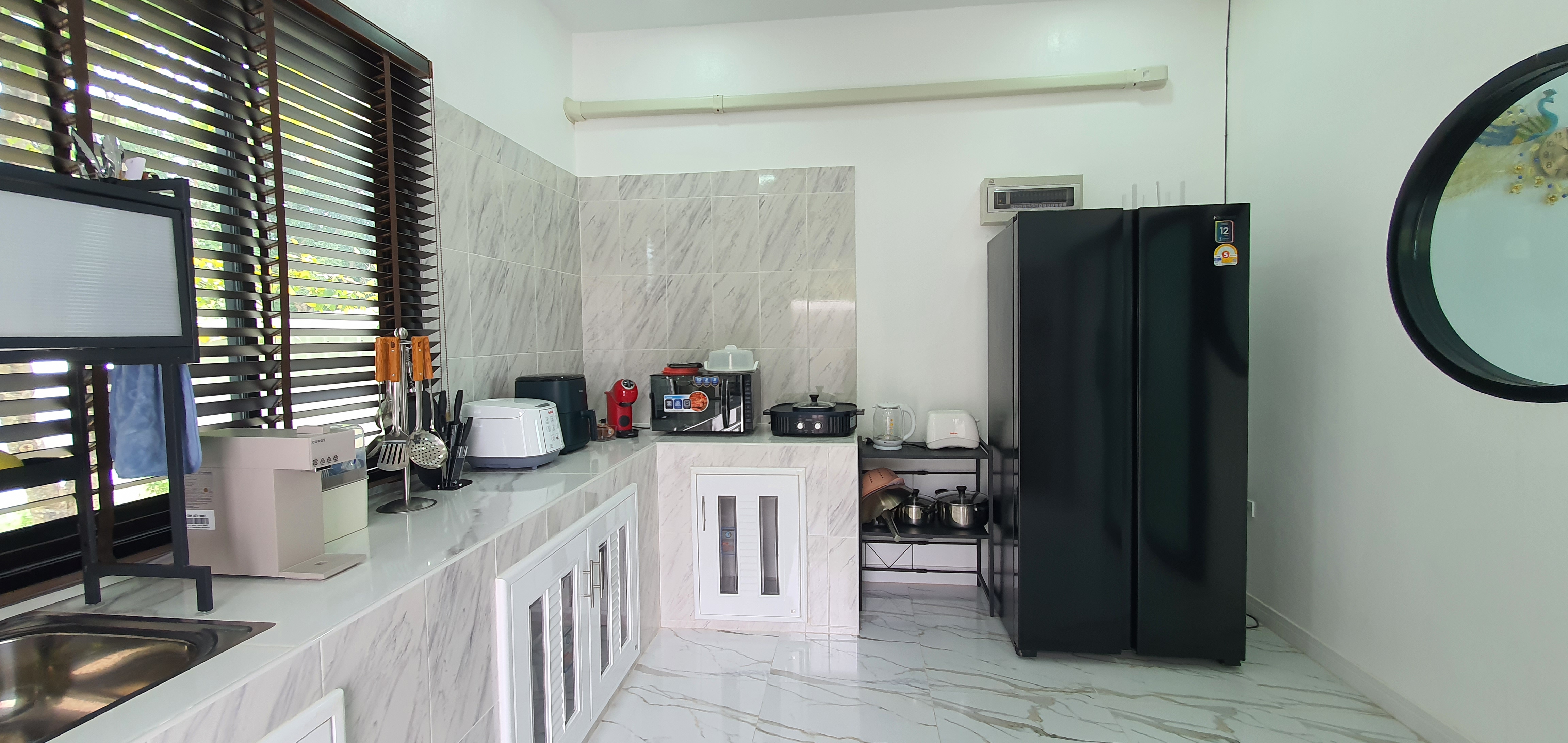 ทั้งครัวในและครัวนอกถูกเตรียมมาอย่างพร้อมใช้งาน มีเตาแก๊ส หม้อ กระทะ จานชาม ช้อนส้อม แก้วน้ำ และอุปกรณ์ปิ้งย่างครบชุด ให้คุณสามารถทำอาหารมื้อโปรด หรือจัดปาร์ตี้บาร์บีคิวได้อย่างอิสระ