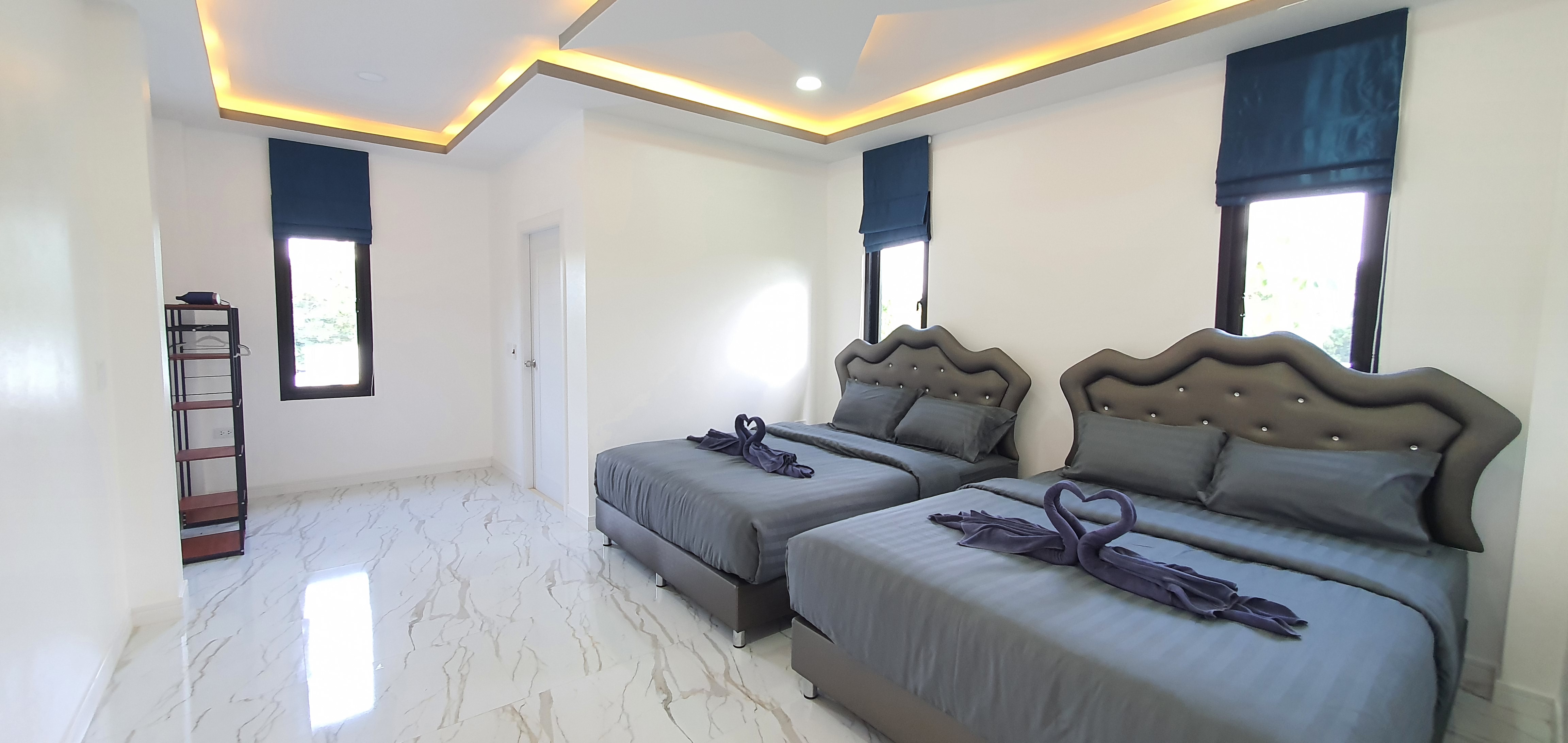 ทุกห้องนอนได้รับการออกแบบให้เป็น Master Bedroom อย่างแท้จริง กว้างขวาง ตกแต่งอย่างมีรสนิยม พร้อมเตียงคู่ขนาดควีนไซส์และเครื่องนอนเกรดพรีเมียม เพื่อการนอนหลับพักผ่อนอย่างลึกและสบาย ทั้งยังมีความเป็นส่วนตัวสูง เหมาะสำหรับทุกช่วงวัย ไม่ว่าจะเป็นผู้ใหญ่ เด็ก หรือผู้สูงอายุ