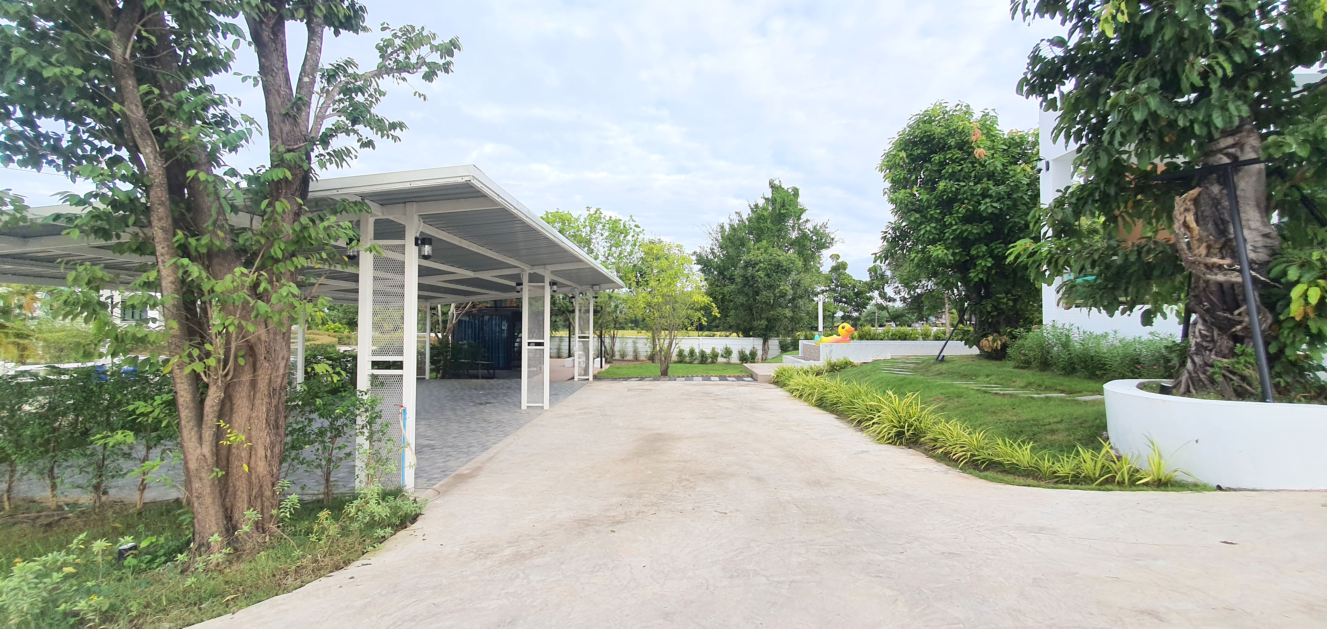 ไม่ต้องกังวลเรื่องที่จอด บ้านพักมีทั้ง โรงจอดรถในร่ม และ ลานจอดกว้างขวาง ภายในบริเวณบ้าน รวมแล้วรองรับรถยนต์ได้สูงสุด 12 คัน สะดวกสบายสำหรับกลุ่มใหญ่หรือครอบครัวที่เดินทางมาหลายคัน